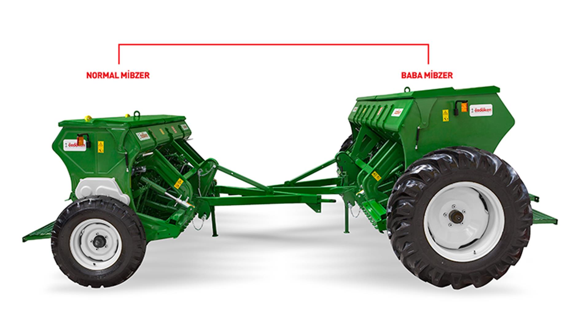 BABA MİBZER büyük çiftçiler için büyük tohum ve gübre sandıklı mibzerdir ve diğer mibzerlerimize göre 100 % daha fazla tohum ve gübre alır. Şase ve aksları DOMEX çeliklerle güçlendirilmiştir. Lastik ebatları büyütülmüştür.