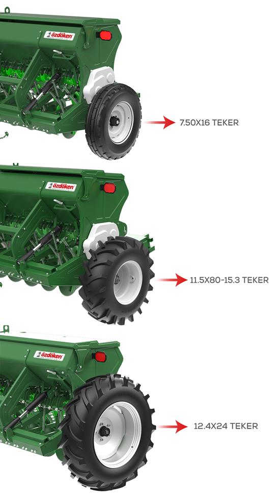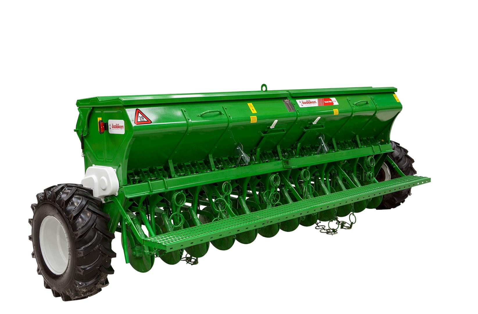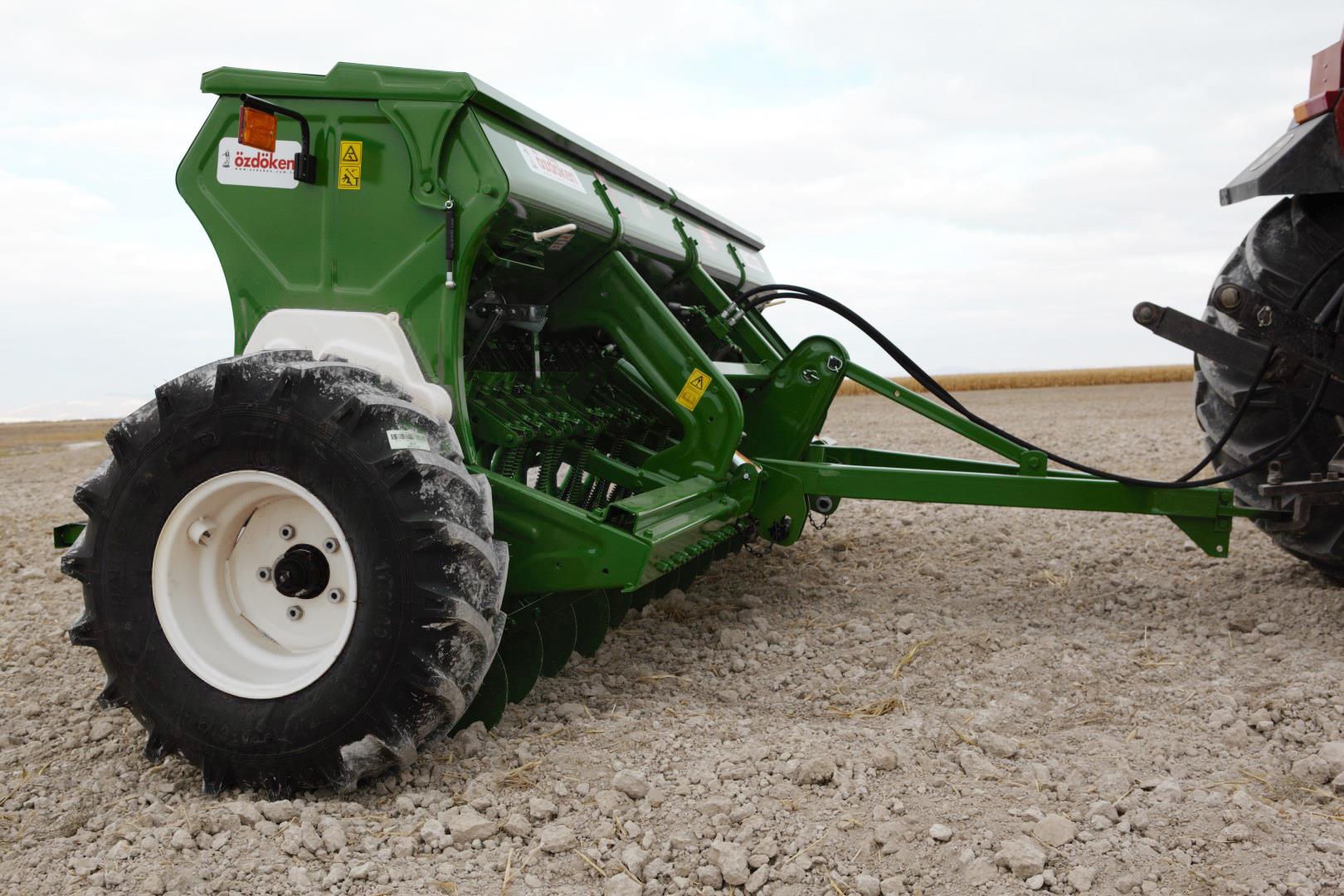 ÖZDÖKEN Model HBM Serisi Kombine Hububat Mibzerleri, her türlü toprak yapısına uygun ekim çözümleri sunar. Bu seri, buğday, arpa, yulaf, mercimek, nohut, fasulye gibi büyük tohumların yanı sıra, kanola, yonca ve korunga gibi küçük tohumları da verimli bir şekilde ekebilme kapasitesine sahiptir. Üç farklı model seçeneği ile kullanıcılarına esneklik sağlar. Standart hububat ekimi için tasarlanmış Model HBM, yumuşak topraklarda aynı derinlikte ekim yapabilen büyük tekerlekli Model HBM-B (12.4x24 ölçülerinde), ve küçük tohumlar için özel olarak tasarlanmış Model HBM-K, her ihtimale yönelik farklı toprak koşullarına uygun çözümler sunar. Model HBM serisinin tasarımında, tohum ve gübre sandığındaki birikmeleri önlemek için "V" tipi sandıklar kullanılmıştır. Bu sayede, ekim işlemi sırasında karışıklık yaşanmaz. Ekimin ardından temizlik işlemleri de oldukça kolaydır çünkü "boşaltma kolları" sayesinde tohum ve gübre kalıntıları zahmetsizce temizlenebilir. Ekim derinliğinin hassas bir şekilde ayarlanabilmesini sağlayan hidrolik batım ayarı özelliği, toprağa uygun derinlikte ekim yapmayı mümkün kılar. Ayrıca, çift rulmanlı ekici diskleri, hem verimli bir ekim sağlar hem de uzun ömürlü bir kullanım sunar. Model HBM serisinin tasarımında yer alan tek borulu, çift borulu ve döküm borulu ekici ünite seçenekleri, toprak koşullarına göre en uygun ekim derinliği ve teknik çözümü sunar. Hem çekili hem de hidrolik olarak kullanılabilen ok sistemi, her türlü toprak yapısında verimli sonuçlar elde edilmesini sağlar. ÖZDÖKEN Model HBM Serisi, yüksek performansı, dayanıklı yapısı ve kullanıcı dostu özellikleri ile hem profesyonel hem de tarımda yeni olan çiftçilere mükemmel bir seçenek sunar.